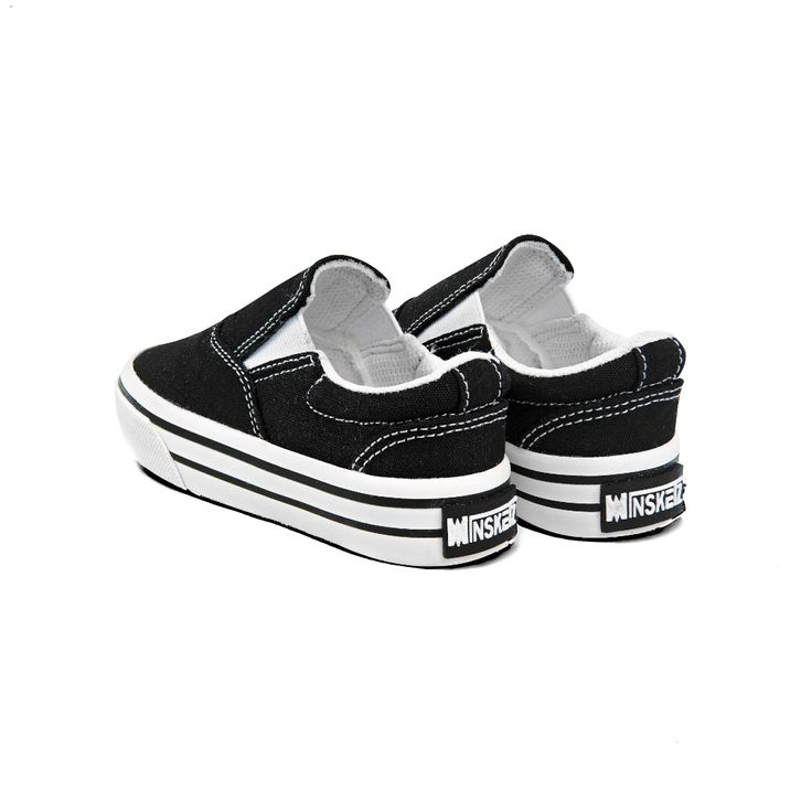 Sepatu anak sekolah sd Winsketz - Sepatu Anak Laki Laki Perempuan Sekolah PAUD TK SD Unisex Hitam Putih Slip On Black