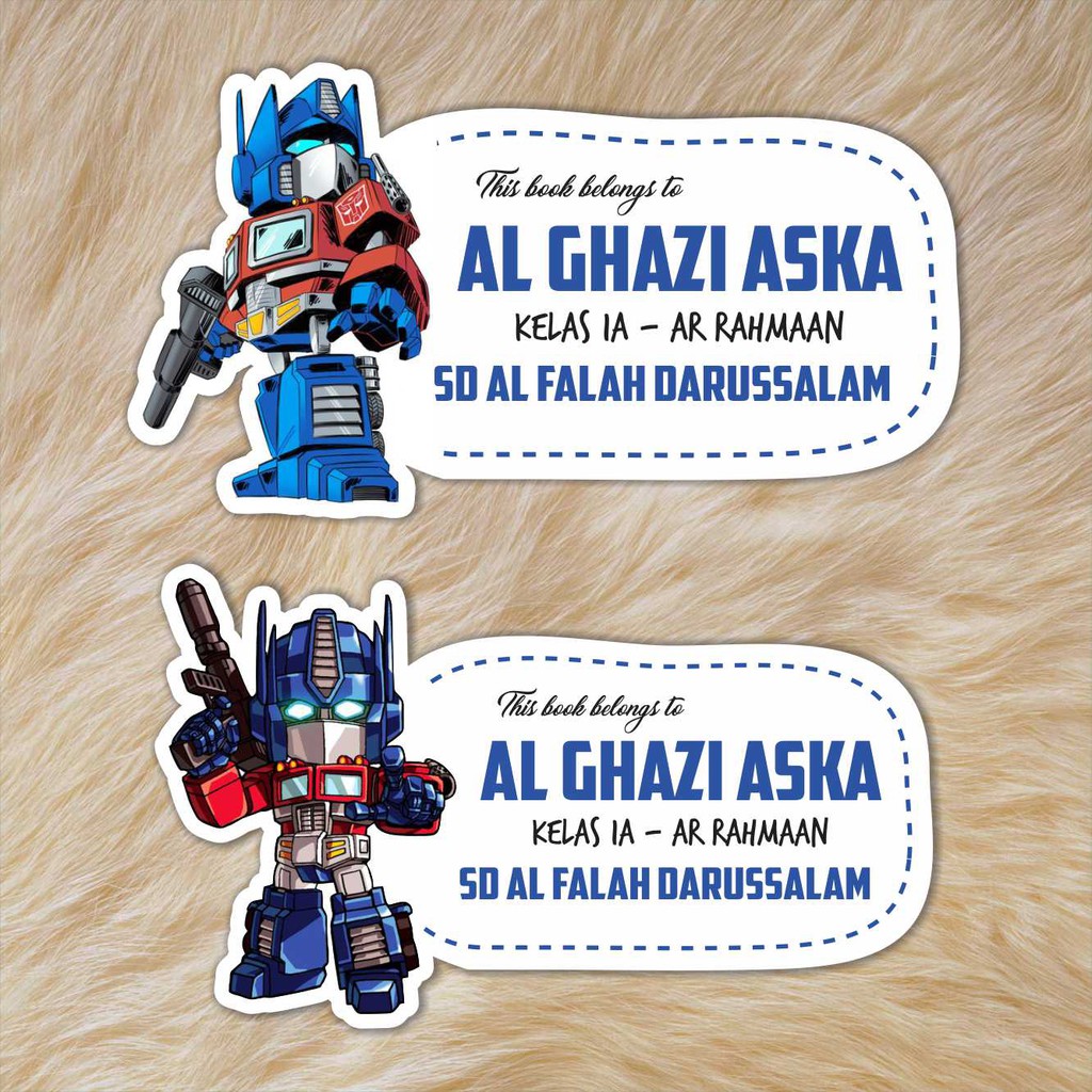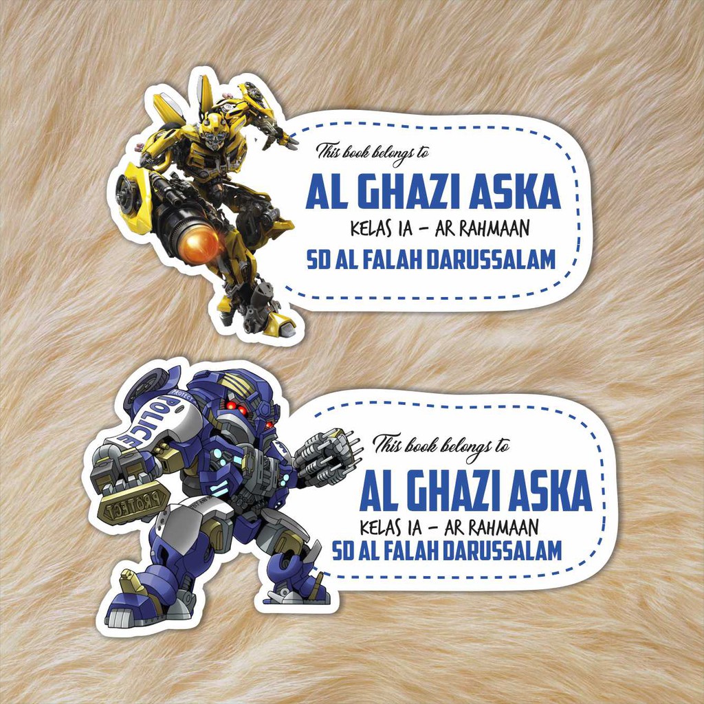 Stiker Nama Bentuk Custom Sampul Buku Tulis/Pelajaran Tema Transformer