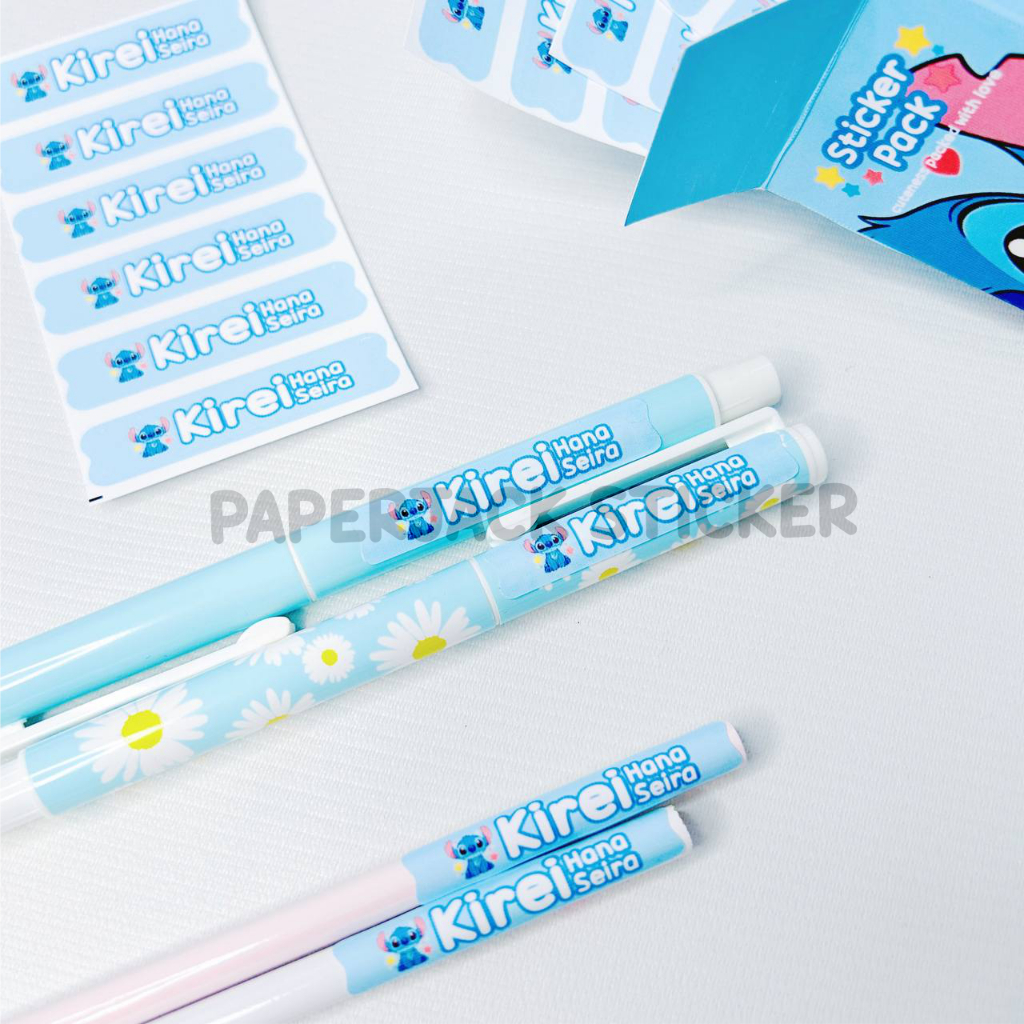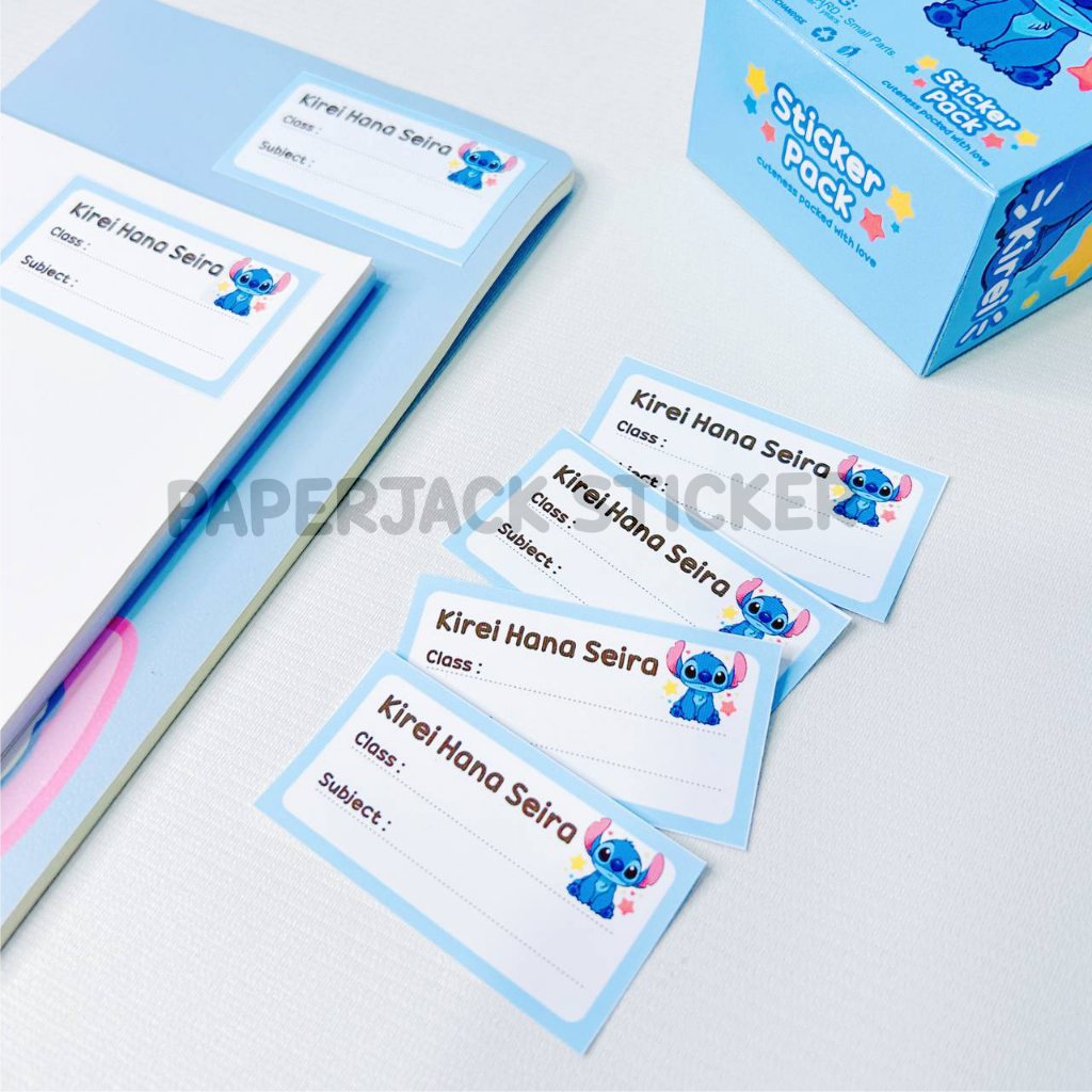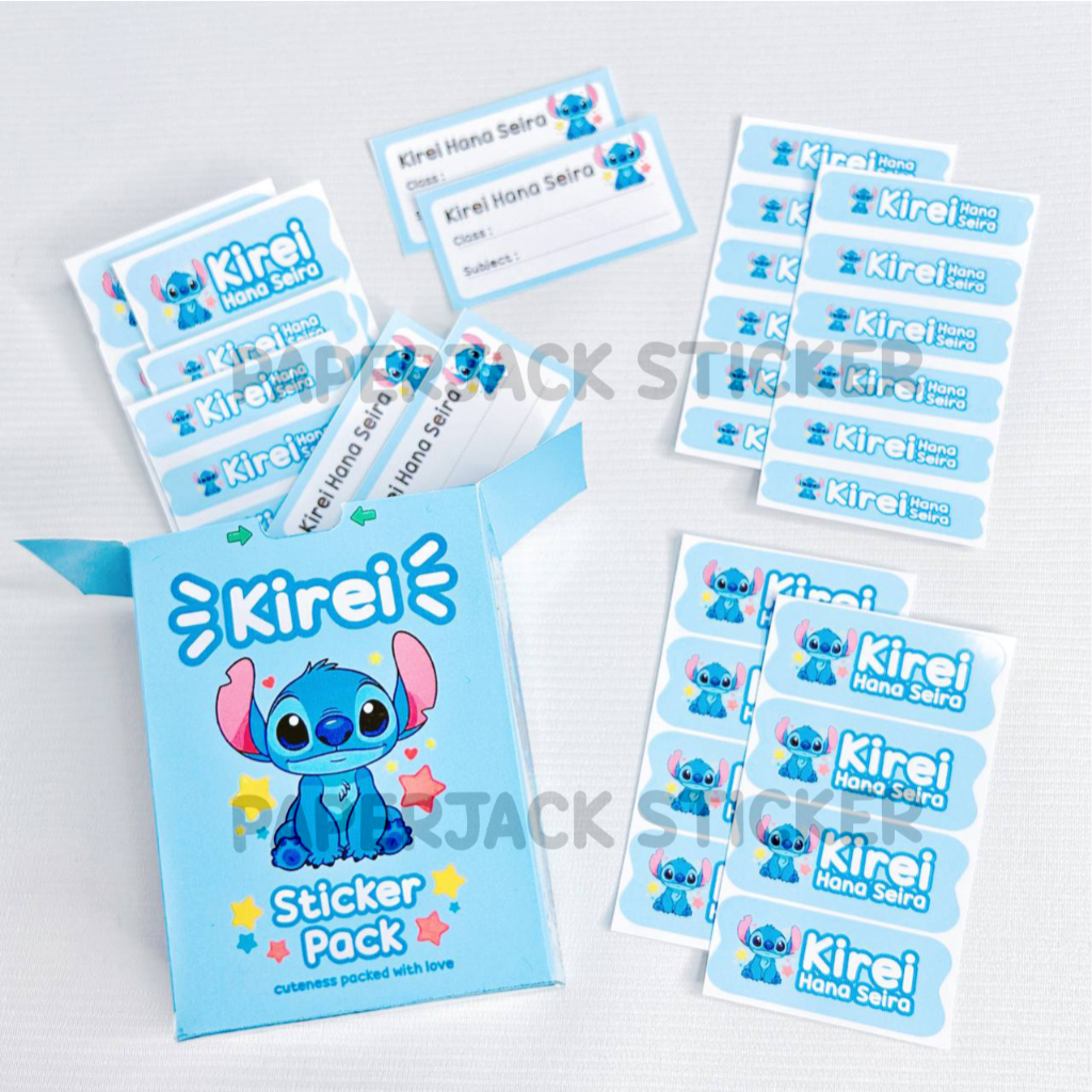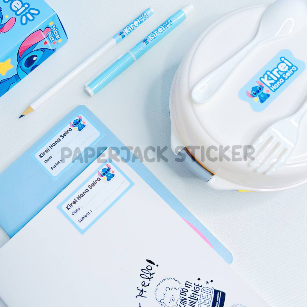 Sticker Nama Custom Waterproof 1 Pack Tema Stitch