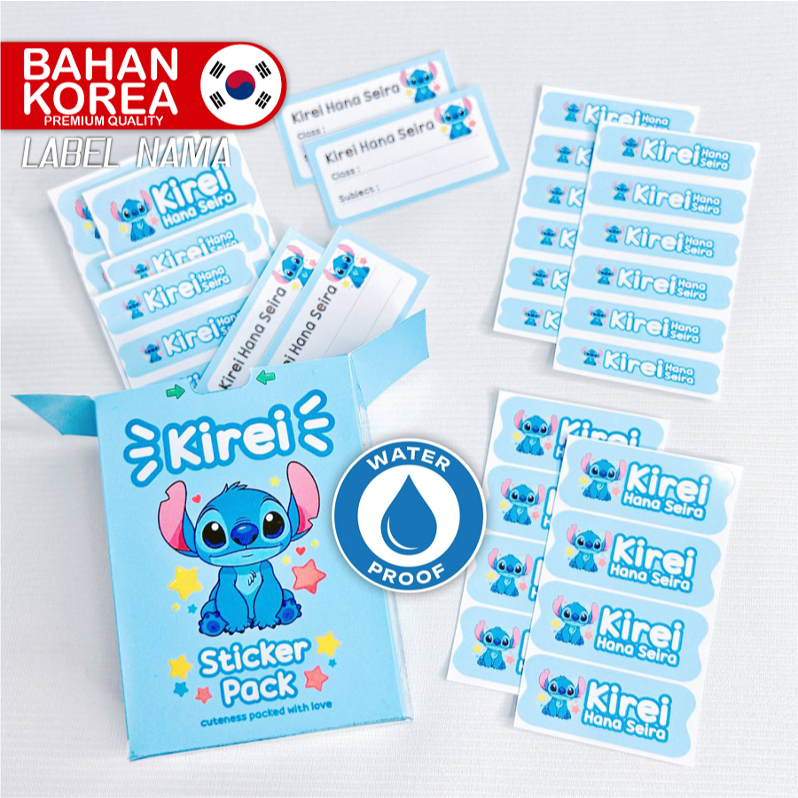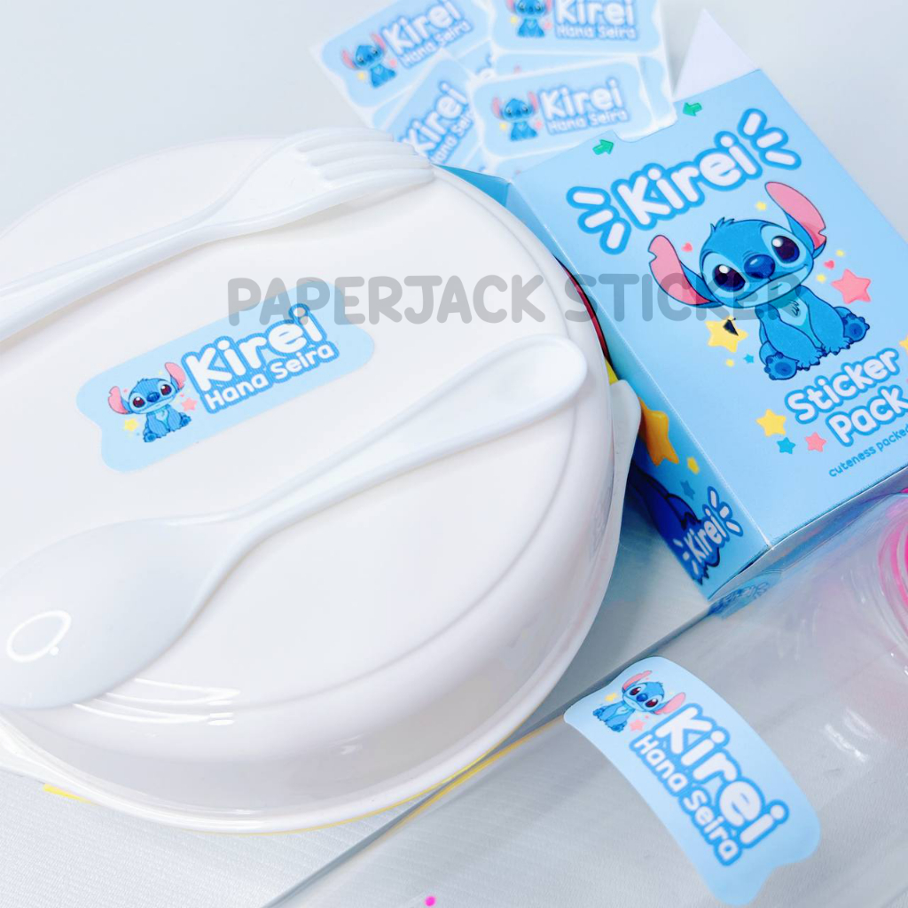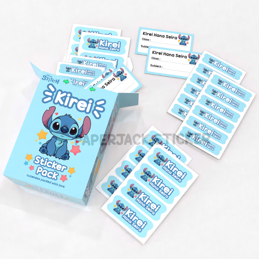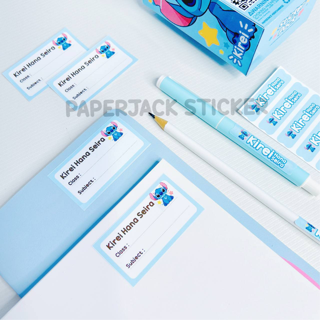 Sticker Nama Custom Waterproof 1 Pack Tema Stitch