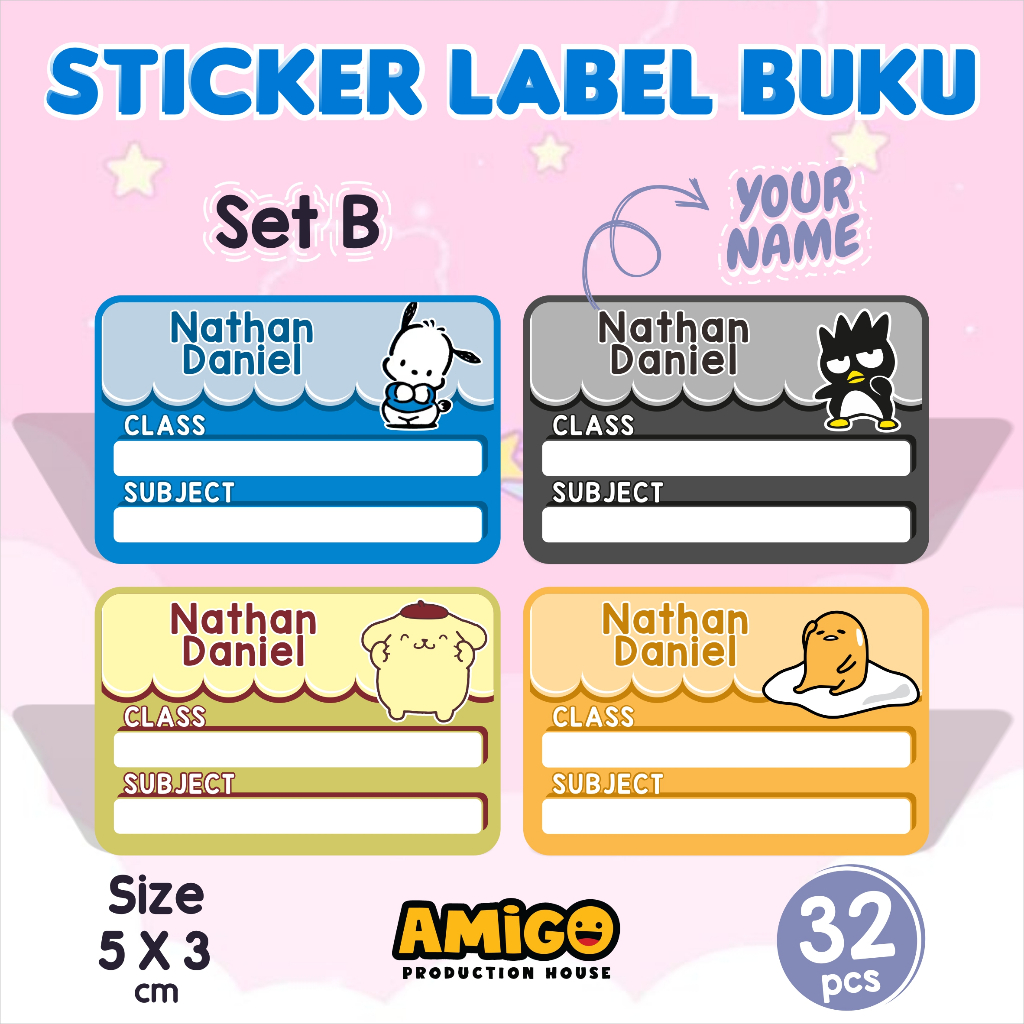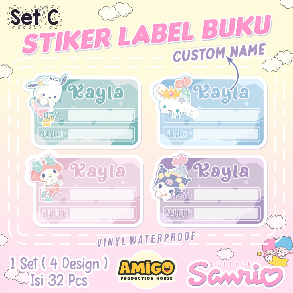 Sticker Buku Sanrio Label Buku Pelajaran Sekolah Anak stiker waterproof Custom Nama