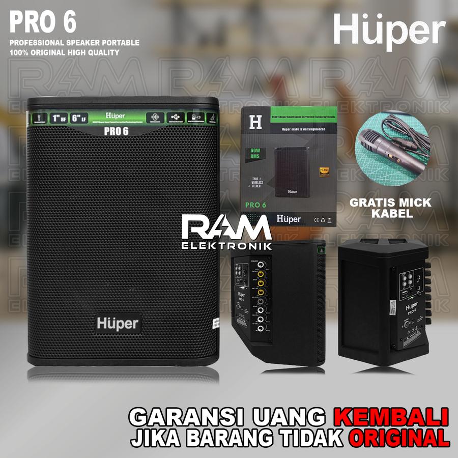 Speaker Portable HUPER PRO 6 | PRO6 6 Inch Original Bluetooth USB Mp3 Wireless