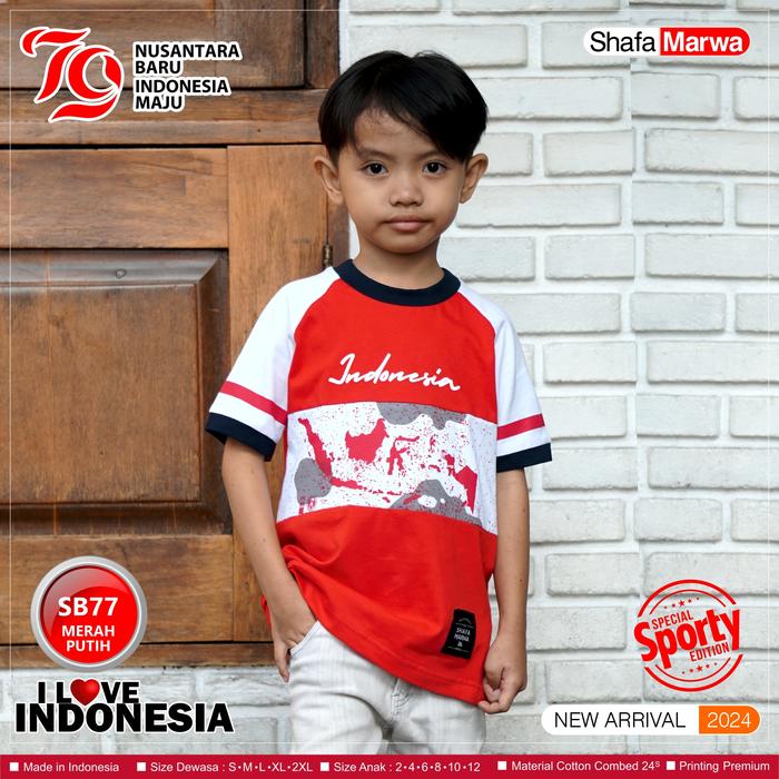 TERLARIS SHAFAMARWA BAJU MERAH PUTIH AGUSTUSANKAOS SERAGAM COUPLE EDISI KEMERDEKAAN 17 AGUSTUS SM77ANAK 2TH
