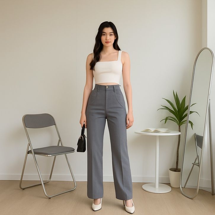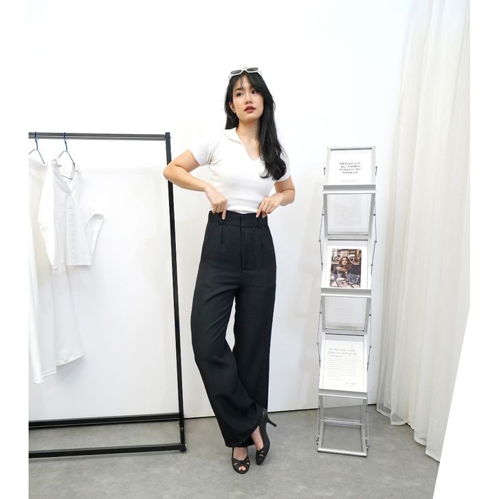 PROMO ARA - Celana Highwaist Wanita Flared Loose Pants Celana Cutbray Wanita Basic Korean Style Kekinian egidmn