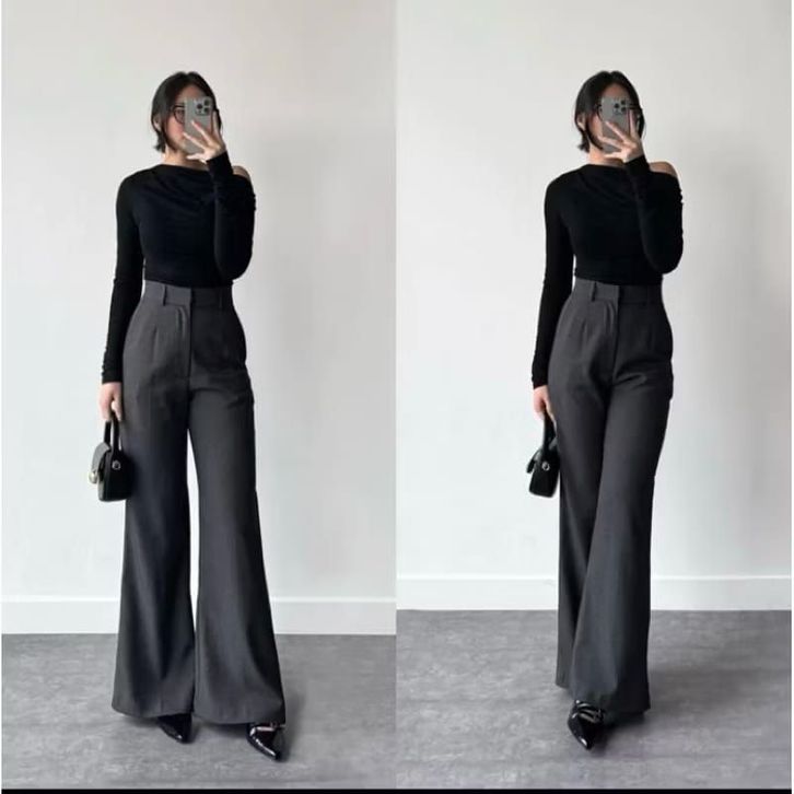 PROMO ETTA PANTS - Highwaist Flare Pants Loose Cutbray Anti Kusut Celana Panjang Wanita Korean Style Semi Flared