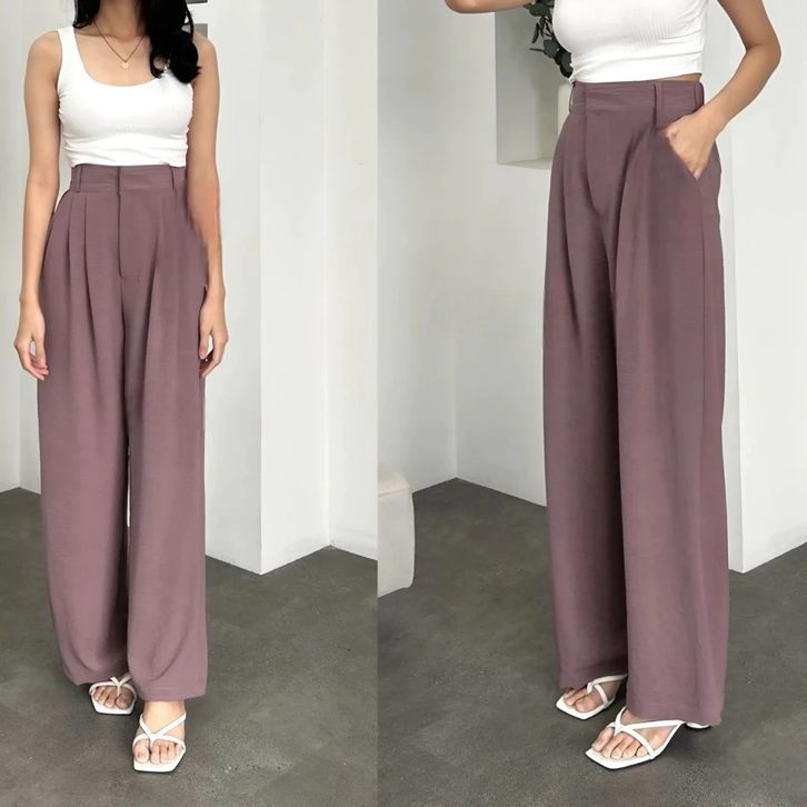 TERBARU ALOHA Yumiko Loose Pants Trousers Wanita - Celana Kulot Anti Kusut - Celana Kantor Formal/Casual ohach