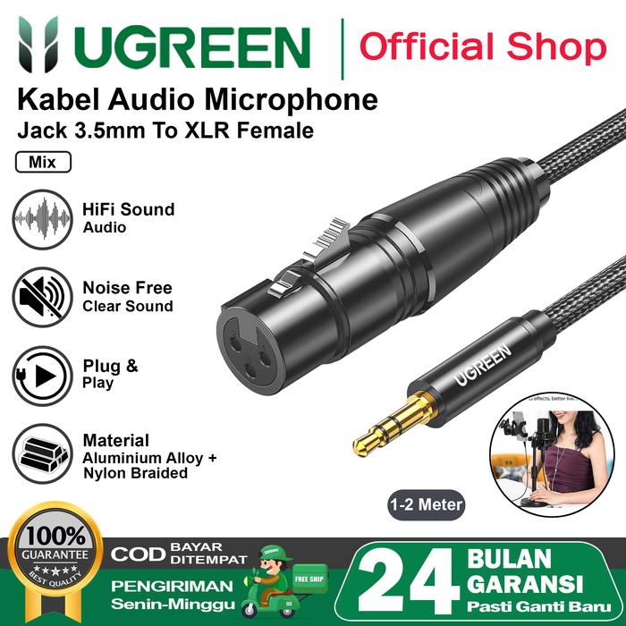 UGREEN Kabel Audio XLR Microphone To Jack Aux 3.5mm Male to XLR Female