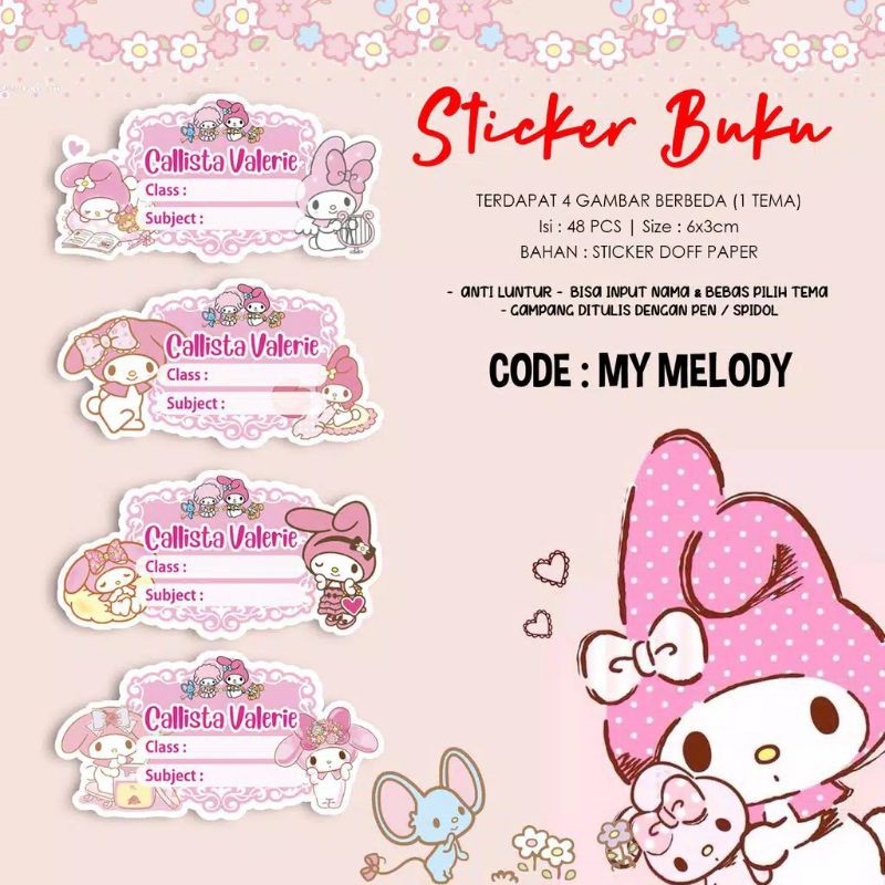 Sticker / Stiker Buku Custom Nama Karakter Tema MY MELODY