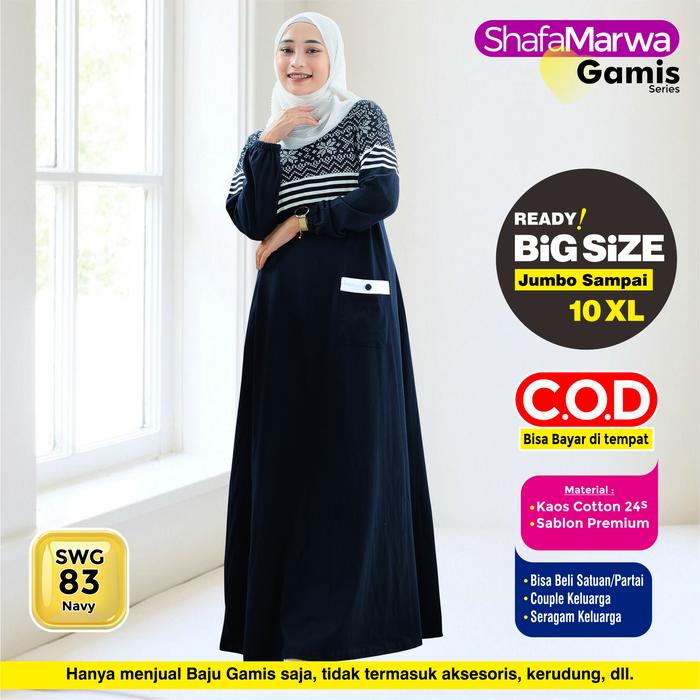 TERLARIS SHAFAMARWA GAMIS MUSLIMAH WANITA BUSUI FRIENDLY TERBARUDRESS JUMBO KAOS KATUN COMBED SWG83 NAVYS