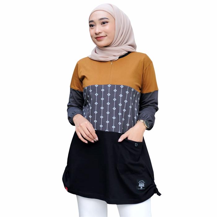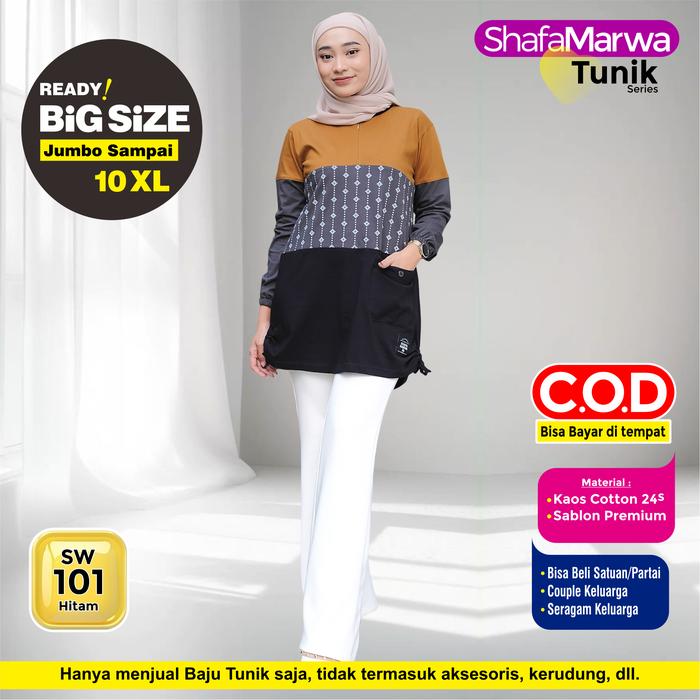 TERLARIS SHAFAMARWA ATASAN TUNIK WANITA BUSUI FRIENDLY TERBARUREADY JUMBO KAOS KATUN COMBED SW101 HITAMS