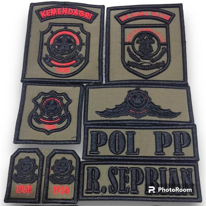 TANPA DP BORDIR SATPOL PP POL PP HITAM MERAH TIMBUL 3D
