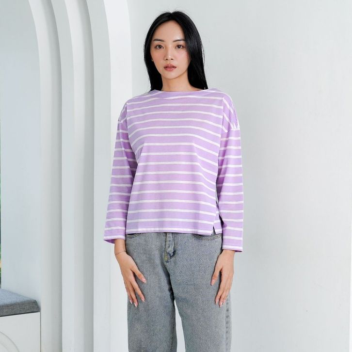 MATSUDA Kaos Wanita T Shirt Stripe Katun Ruby