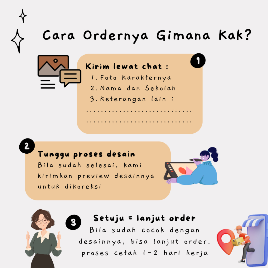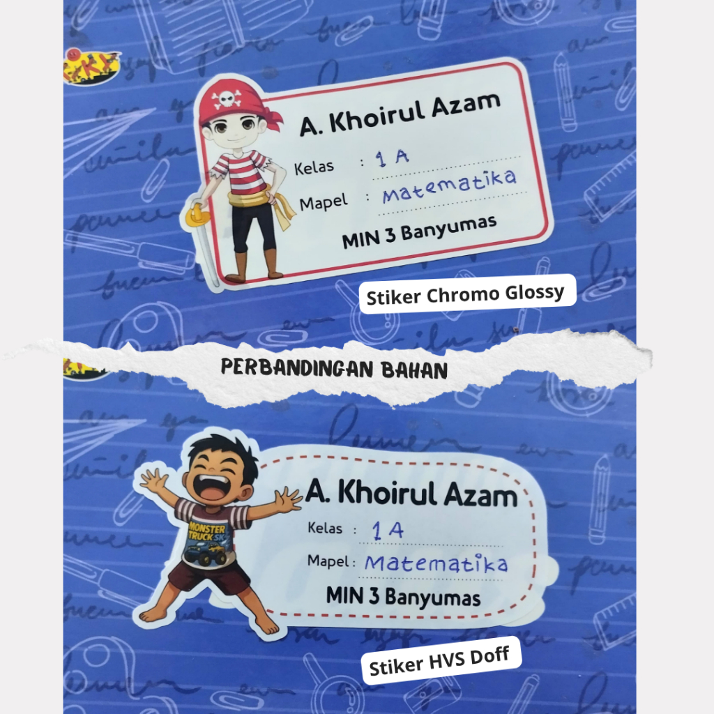 Stiker Nama Sampul Buku Tulis, LKS, Custom Karakter Bisa Pakai Foto Sendiri Selfie atau Foto Idola