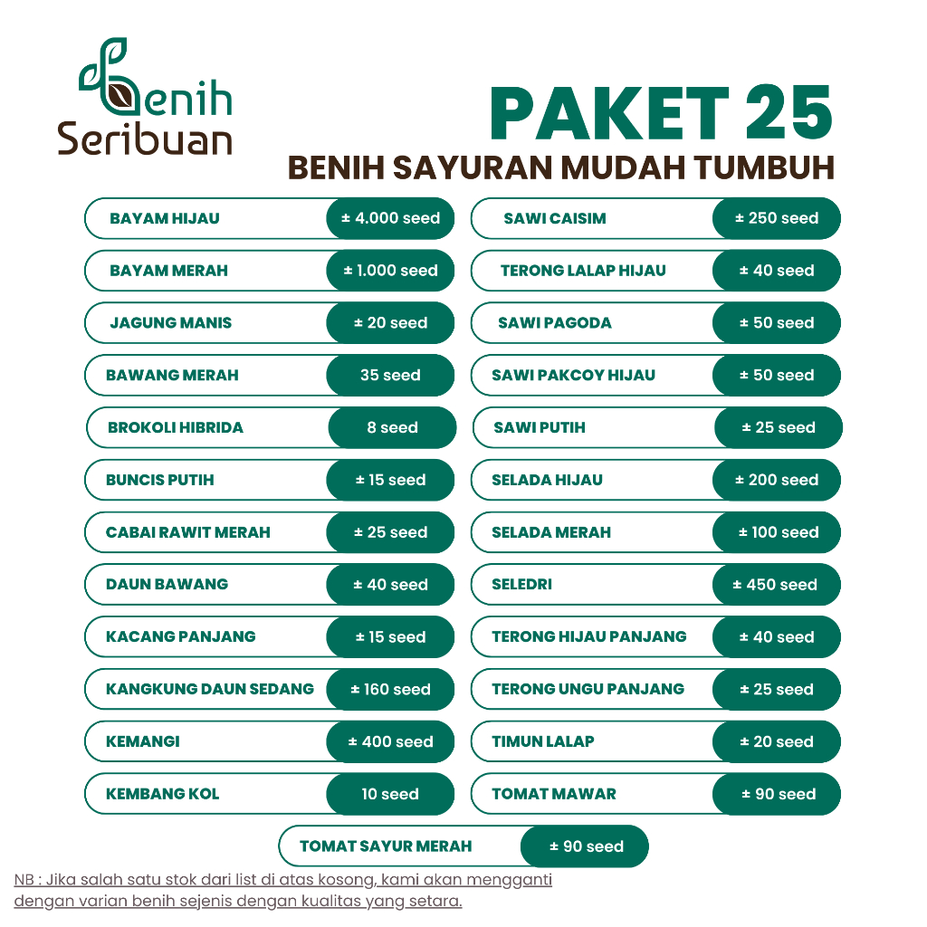 BENIH SERIBUAN PAKET LENGKAP 25 MACAM BENIH SAYUR SAYURAN PEMULA