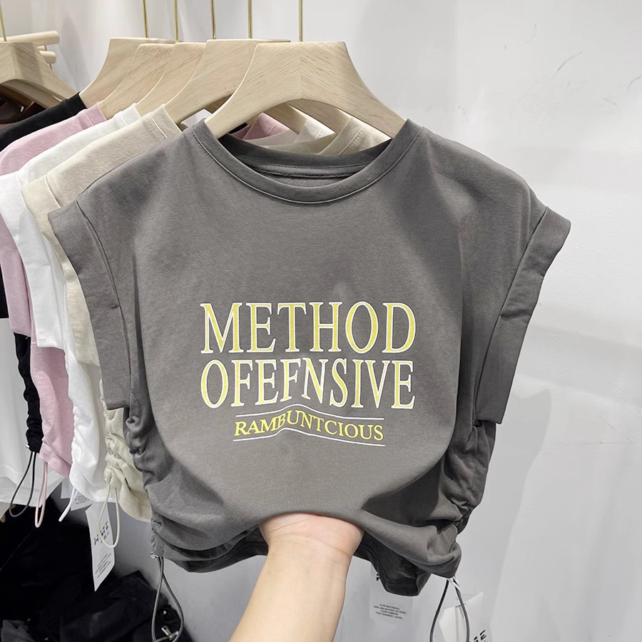Kaos Wanita Lengan Pendek Serut Leher Bulat/T-shirt Pendek Putih