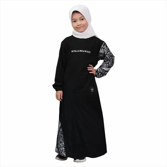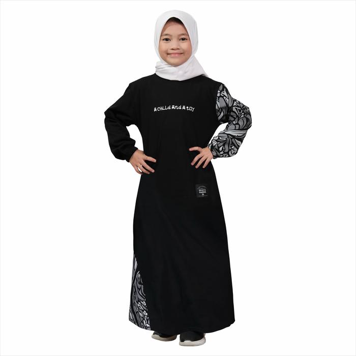 TERLARIS SHAFAMARWA GAMIS ANAK MUSLIMAH TERBARUDRESS PEREMPUAN KAOS KATUN COMBED SGG106 HITAM BAJU WANITA LEB