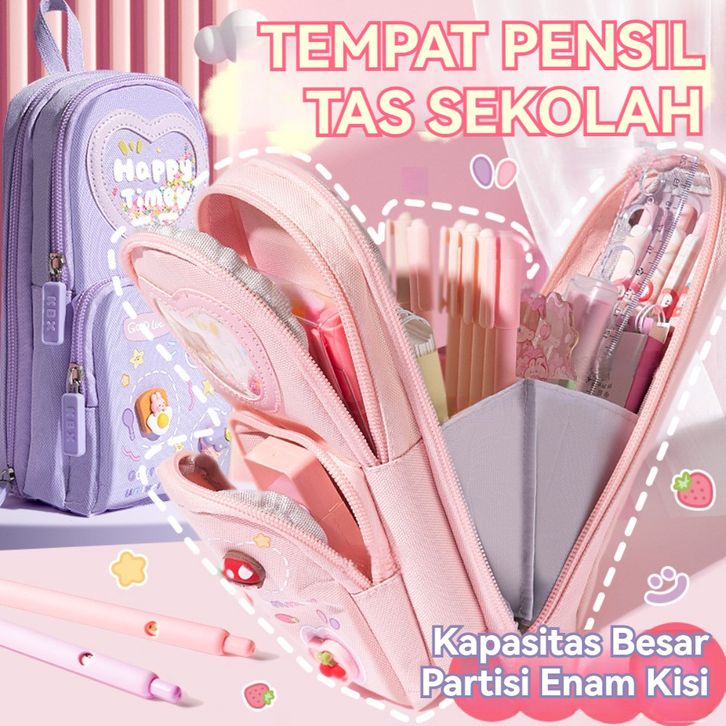 Kotak Pensil Anak Tempat Pensil Kotak 3D Anak Perempuan Lucu Besar/ Kotak Pensil Kanvas 6 Ruw4ng/Kotak Pensil Anak Seko