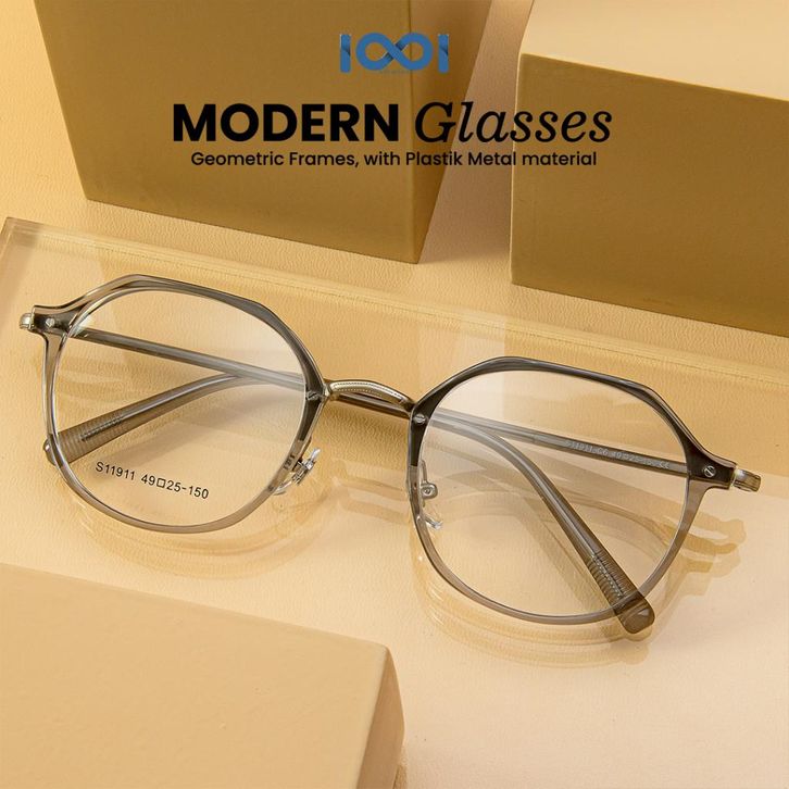 IOOI Eyewear - Kacamata Bulat Metal PC Lensa Anti Blueray Photocromic Pria Wanita S11911