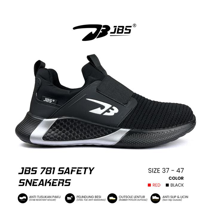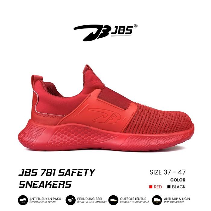 TANPA DP SEPATU SAFETY SNEAKERS JBS 781 SLIP ON WITH STEEL TOE BLACK MERAH CASUAL SHOES PRIAHITAM