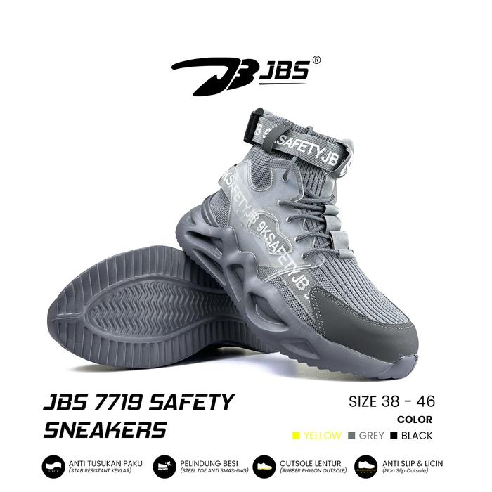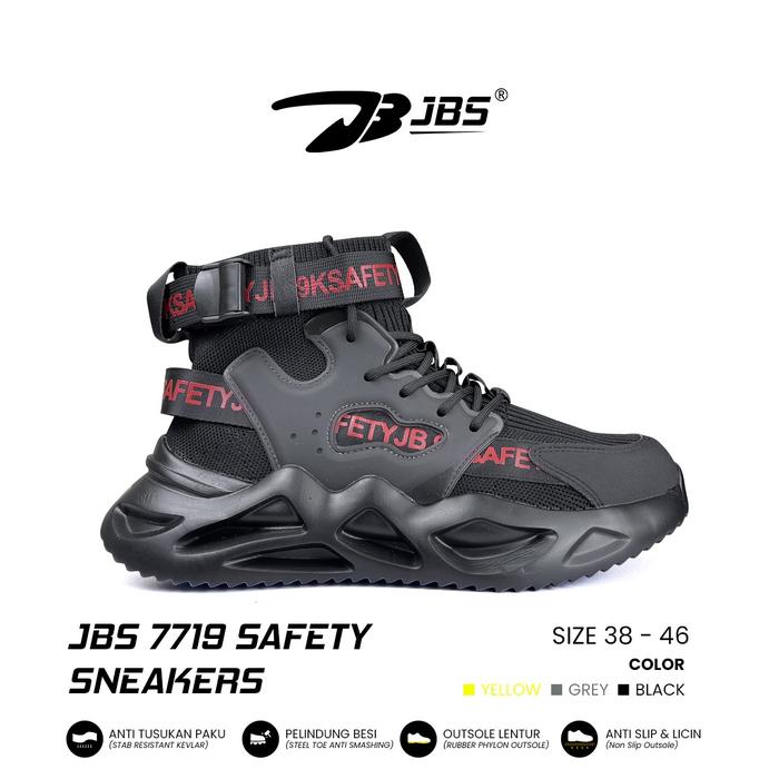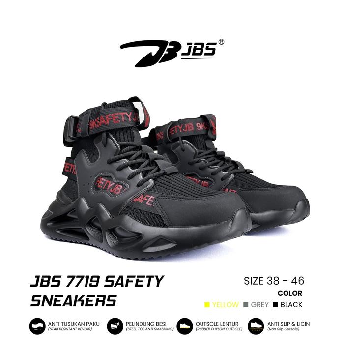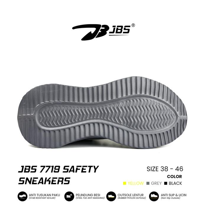 TANPA DP SEPATU SAFETY SNEAKERS JBS 7719 PELINDUNG BESI BAJA KEVLAR ANTI TUSUKAN PAKU HITAM SHOESH