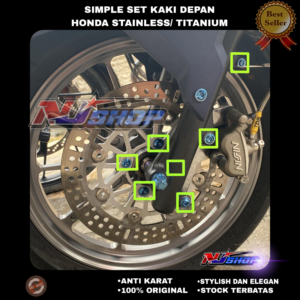 paketan set baut probolt stainless / titanium kaki depan vario mio nouvo scoopy heng original