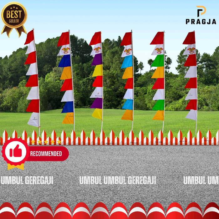 TERLARIS BENDERA UMBULUMBUL GEREGAJI WARNAWARNI MODEL GEREGAJI UKURAN 270CMX36CM 8DAUN BAHAN VELESMP. POLOS