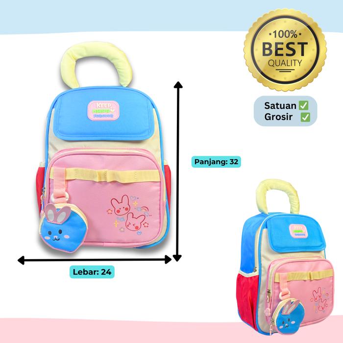 TANPA DP [RAID] DIDOBAGTAS RANSEL ANAK TK ANTI AIR MOTIF TREX RABBIT KELINCI PENGAIT DADA IMPORT