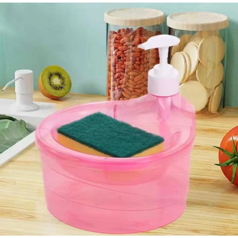 PROMO Dispenser Sabun Cuci Piring 2in1 Bentuk Mangkok Bulat / Soap Pump Dispenser 2in1 multifungsi free busa Sponge