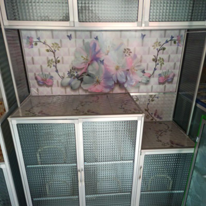RAK PIRING MINIMALIS MODERN KACA KERAMIK TERTUTUP SERBAGUNA ALUMUNIUM STAINLESS 3 PINTU UNDAK MAGICOM MURAH TANPA DP