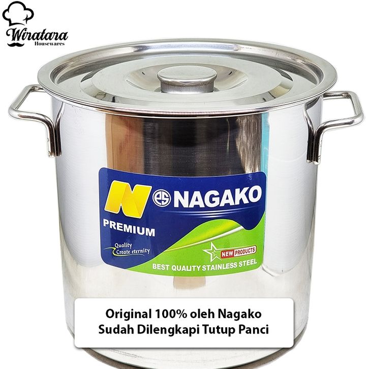 Nagako Panci Stainless 50Liter Tebal Premium Tutup | Stock Pot Masak Tong Air Stenlis | Panci Rebus Mie Besar