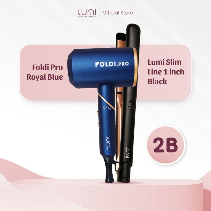 Lumi Bundle 2 - Foldi Pro Hair Dryer + Lumi Slim Line - Alat Pengering Rambut & Catokan Rambut