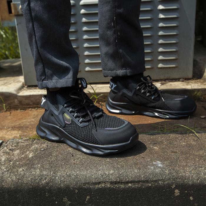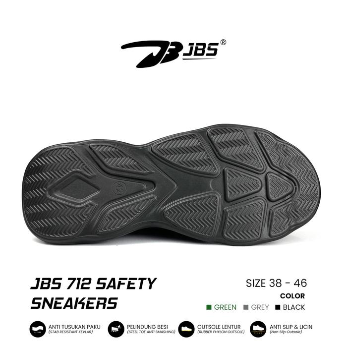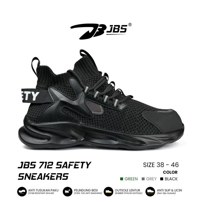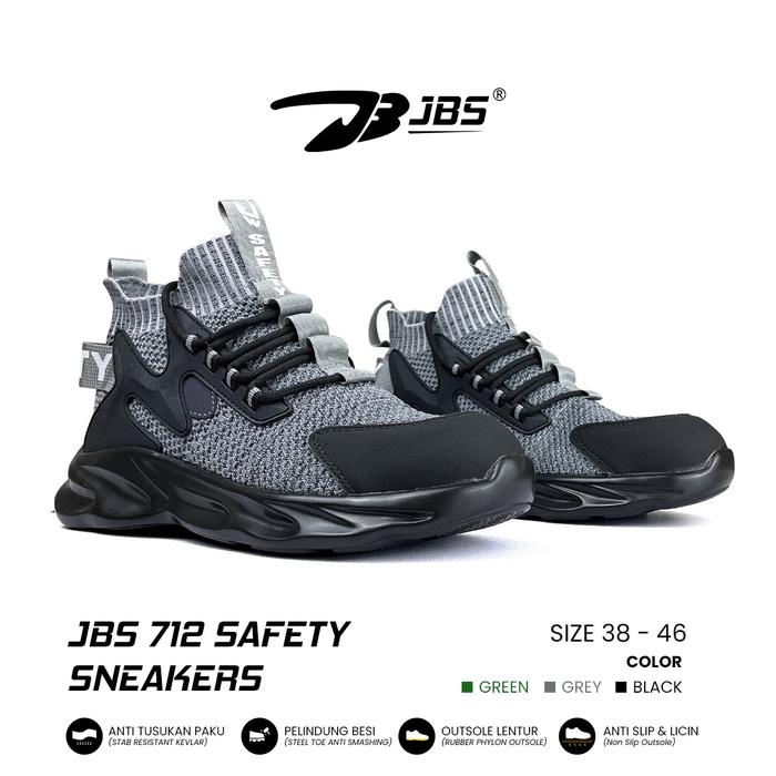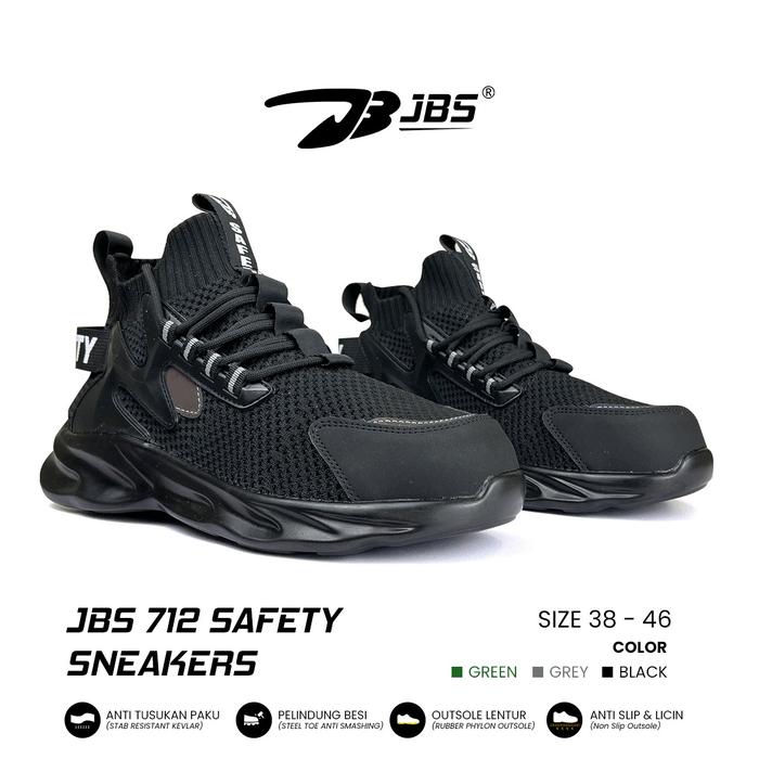 TANPA DP SEPATU SAFETY SNEAKERS JBS 712 WITH STEEL HEAD BLACK MERAH CASUAL SHOES PRIAHITAM 38