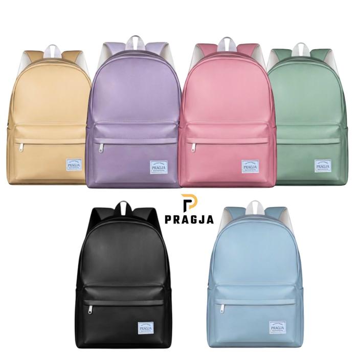 TERLARIS PRAGJA TAS RANSEL WANITA KULIT SINTETIS POLOSMODEL TERBARUBACKPACKRANSEL SEKOLAHHITAM