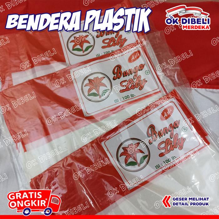 TERLARIS BENDERA PLASTIK MERAH PUTIH BENDERA INDONESIA PLASTIK ISI 100 LEMBARBUNGA LILY