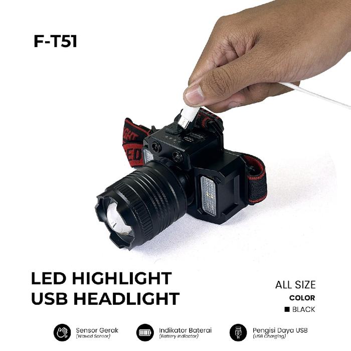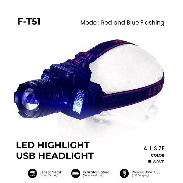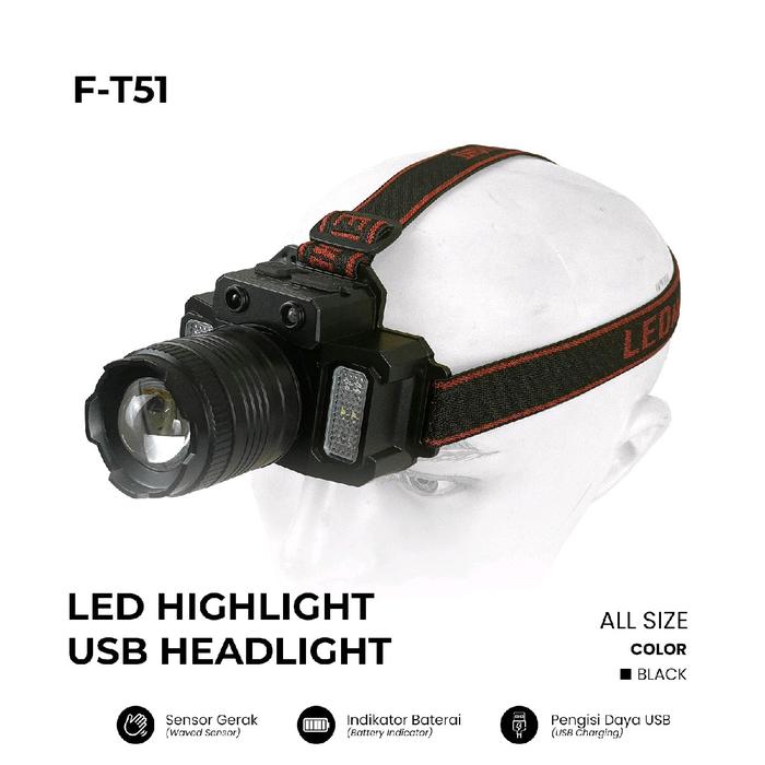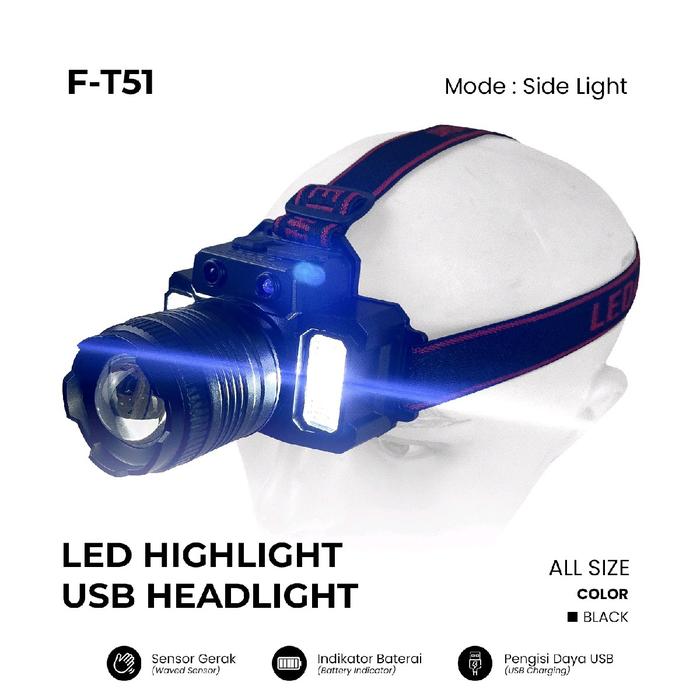 TANPA DP HEADLAMP SENTER KEPALA LED INDUKSI SENSOR GERAK GLARE T8 ZOON ROTATING TAHAN AIR BATERAI LA