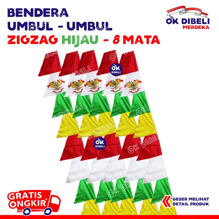 TERLARIS PROMO UMBUL UMBUL ZIGZAG MERAH PUTIH BENDERA INDONESIA GARUDA 3 METERZZ HIJAU