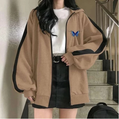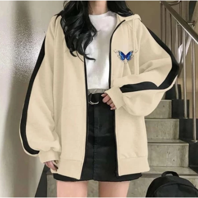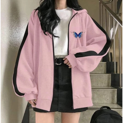 Jaket wanita xxl Sleeve butterplay zipper hoodie wanita korean fleece tebal