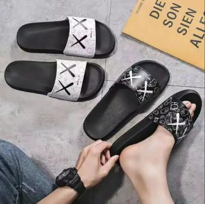 TERLARIS SANDAL SELOP PRIA & WANITA MOTIF SABLON XX TERBARU TRENDY JEPANG BEST SELLER SHOES KARET SENDALHITAM