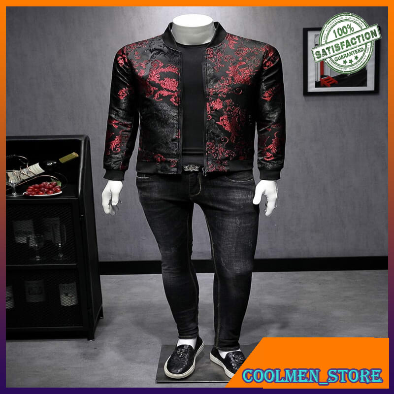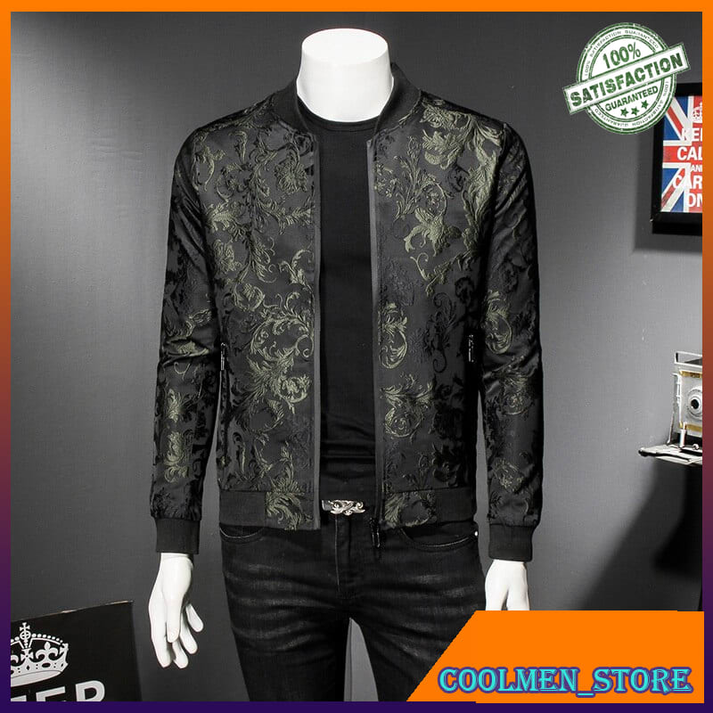 Jaket Pria Kasual Premium Impor 2020 Fall Paisely Floral Jacket Men Vintage Business Bomber Jacket