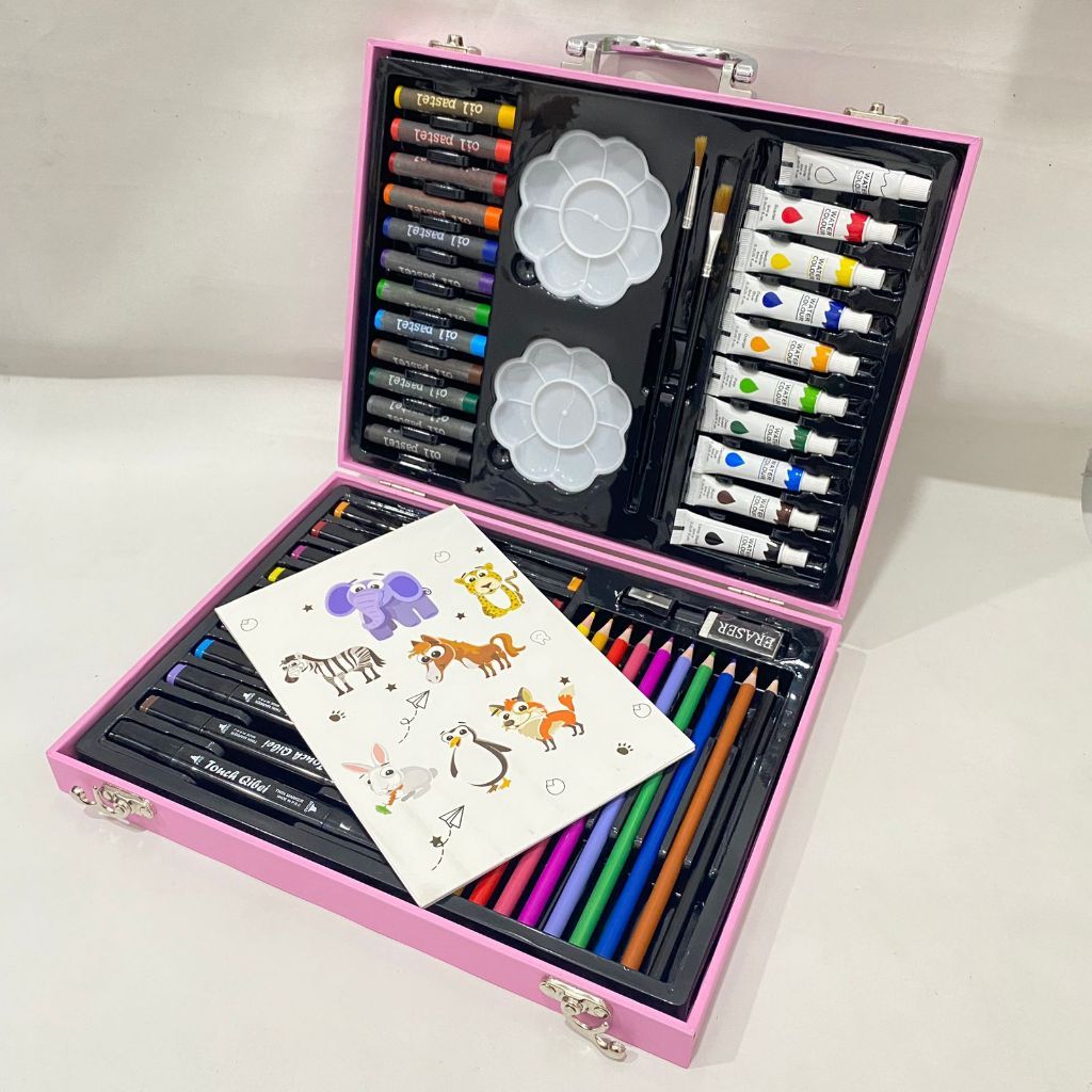 Crayon Set 113pcs Koper Aluminium Besi Krayon Pensil Warna Box Alat Lukis Anak Koper Set Berkualitas / Crayon Koper Set