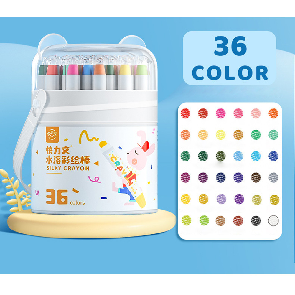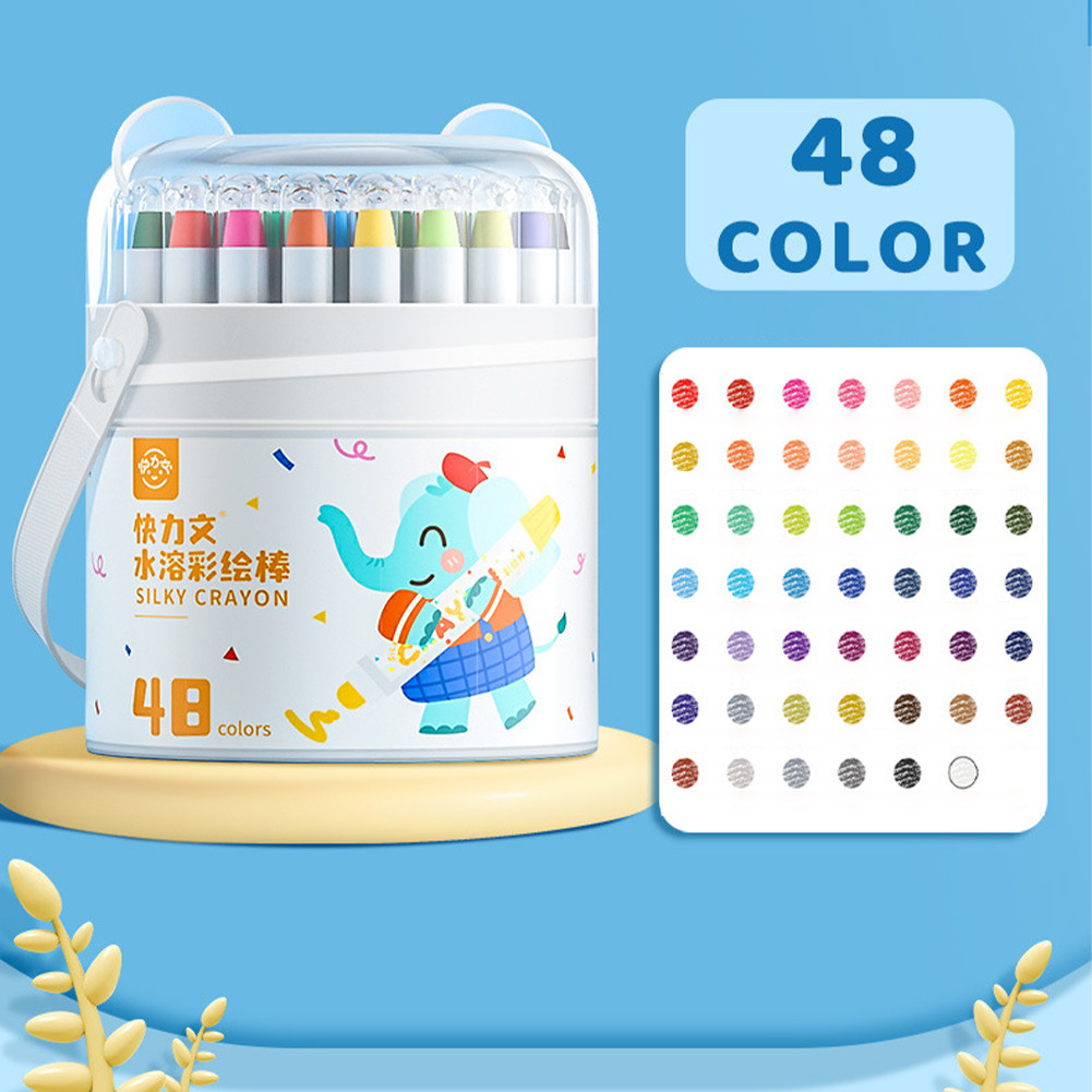 Washable Silky Crayon 36 / 48 Warna Colorful Bucket / Krayon Mewarnai Alat Warna Set Anak Wipe and Clean
