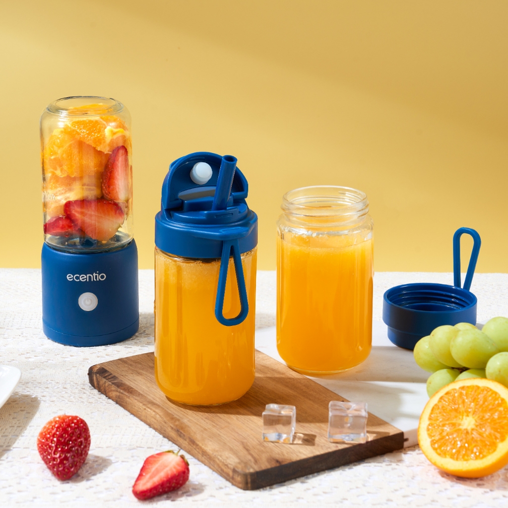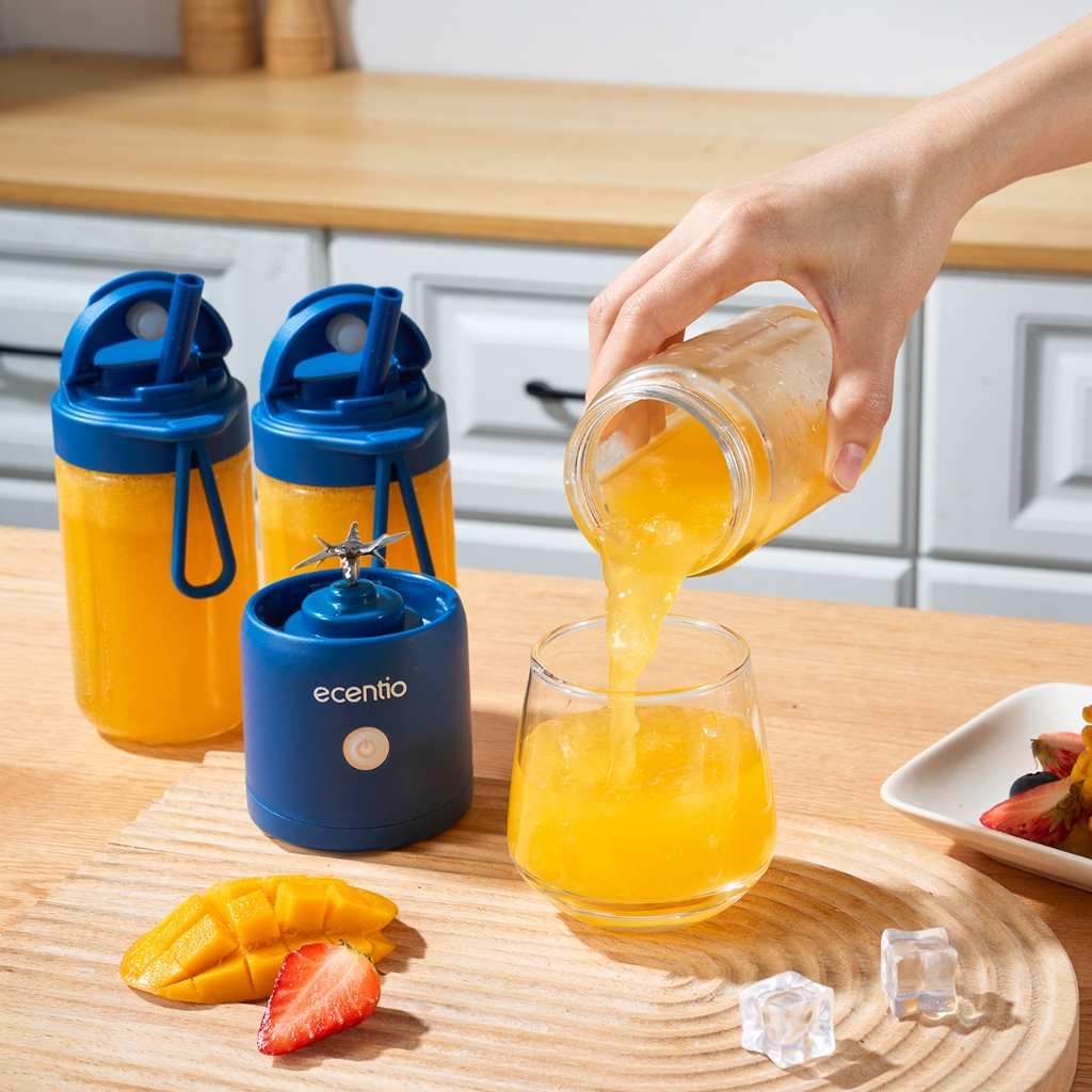 Blender Portable Ecentio 10-Blade – Kaca Tahan Pecah, 3 Botol 380ml, Aman & Praktis