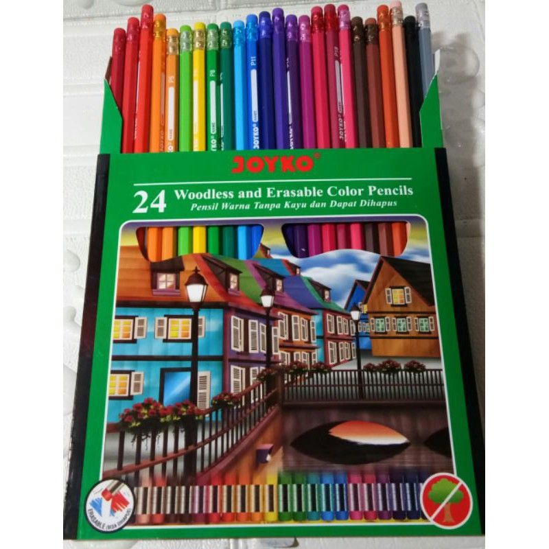 Pensil Warna hapus Joyko 24 Tanpa kayu dan dapat dihapus