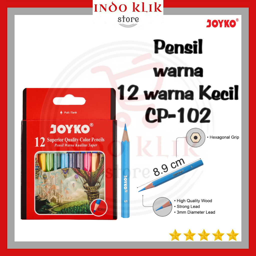Pensil Warna Joyko CP 102 12 Warna Pendek / Pensil Kelir Mewarnai CP-102 / Color Pencil 12 Color
