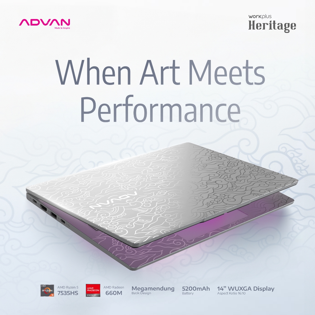 [EXCLUSIVE LAUNCH] ADVAN Laptop Workplus Heritage Ryzen 5 7535HS | 16GB/1TB | Desain Eksklusif Batik Megamendung |