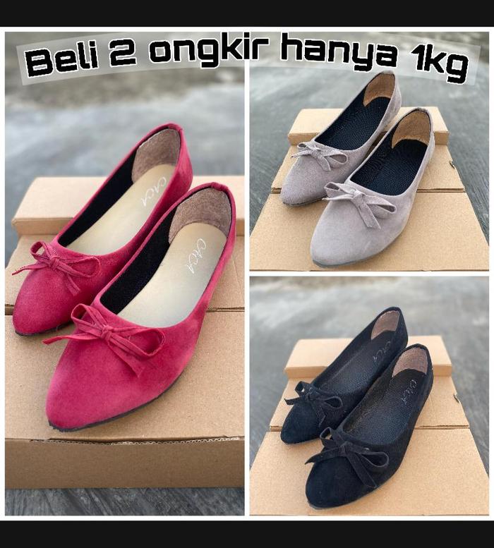 TERLARIS SEPATU FLAT SHOES WANITA TERBARUALASCOE.IDBAHAN BELUDRU ASLIHITAM, 36