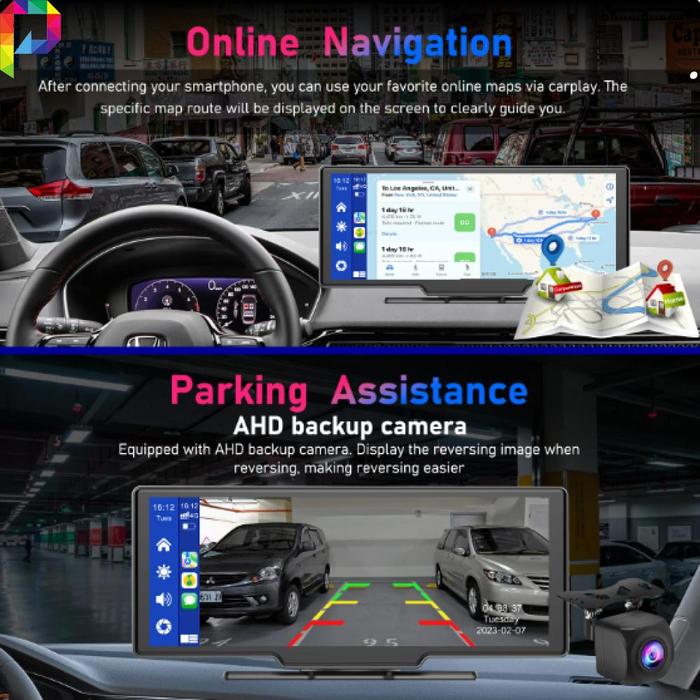 TANPA DP LAYAR MONITOR DASHCAM DUAL CAMERA KAMERA BELAKANG PARKIR DEPAN MOBIL WIRELESS HEAD UNIT TOU