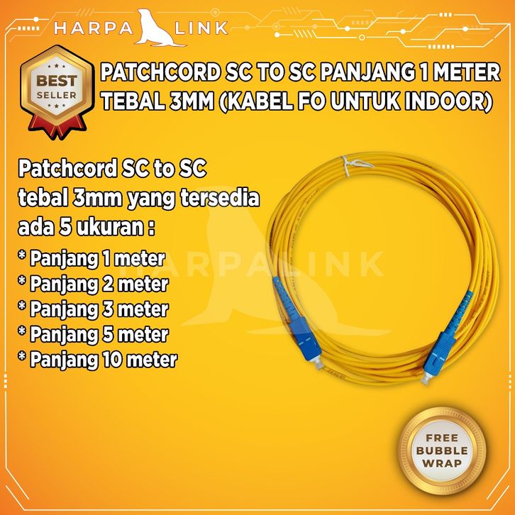 Patch Cord SC UPC Kabel Fiber Optic Single Mode 1M Patchcord FO Warna Kuning 1 Meter SC-SC 3mm Cable Fiber Optik 3 mm 1