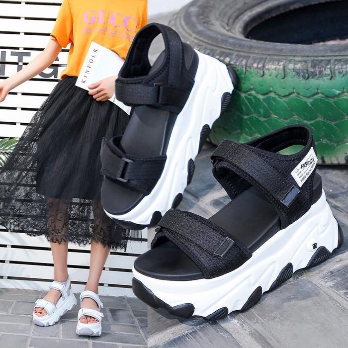 TERLARIS WEDGES PLATFORM WANITA KOREA LOKIE HD90 SEPATU SANDAL HAK TINGGI BEST SELLER SENDALHIJAU, 37