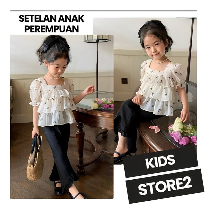 Setelan Anak Perempuan Ssp101 Blouse Shiffon Layer + Celana Panjang Kulot Lengan Pendek Best Seller Termurah Kids Store2